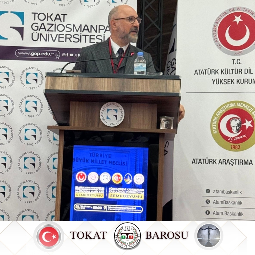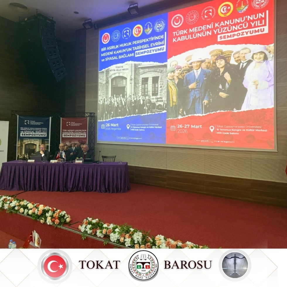 Türk Medenî Kanunu’nun kabulünün 100. yıl dönümü münasebetiyle düzenlenen ve Tokat Baromuzun da paydaşları arasında yer aldığı "Türk Medenî Kanunu’nun Kabulünün Yüzüncü Yılı Sempozyumu", 26 Mart 2026 tarihinde Tokat Gaziosmanpaşa Üniversitesi 15 Temmuz Kongre ve Kültür Merkezi'nde gerçekleştirilen açılış programıyla başladı.