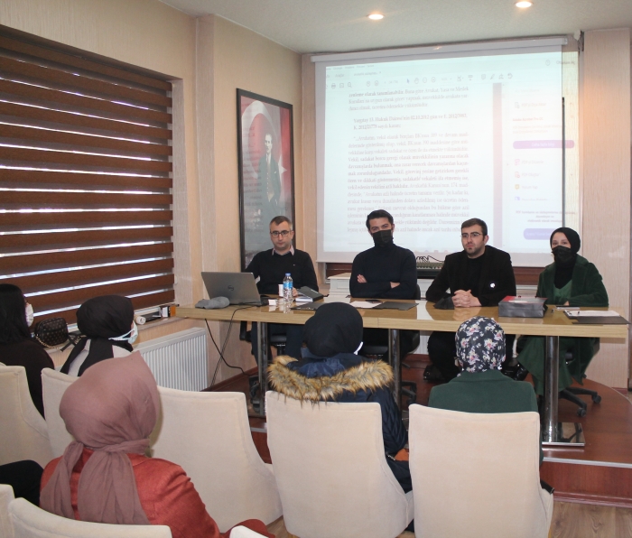 Toplantıda ” Avukatlık Sözleşmesi - Hukuki Yazışmalar ” konulu anlatımlar gerçekleştirilmiştir.