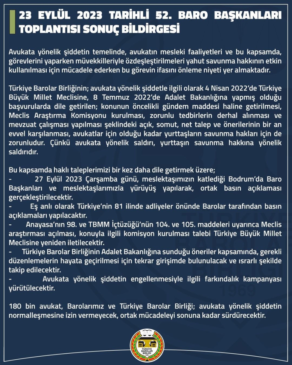 52. Baro Başkanları Toplantısı Sonuç Bildirgesi