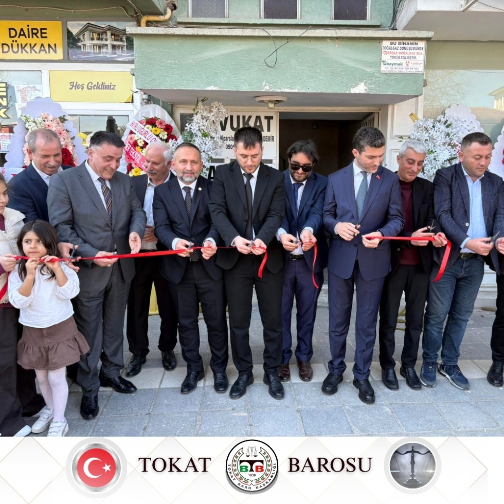27.03.2026 tarihinde Erbaa Belediye Başkanı Ertuğrul KARAGÖL, Baro Başkanımız Av. Volkan BOZKURT, Erbaa Adli Müzaharet Temsilcimiz Av. Mustafa KÖK ve meslektaşlarımız, Av. İsmail Furkan YAYLACI' nın büro açılışına katıldılar.