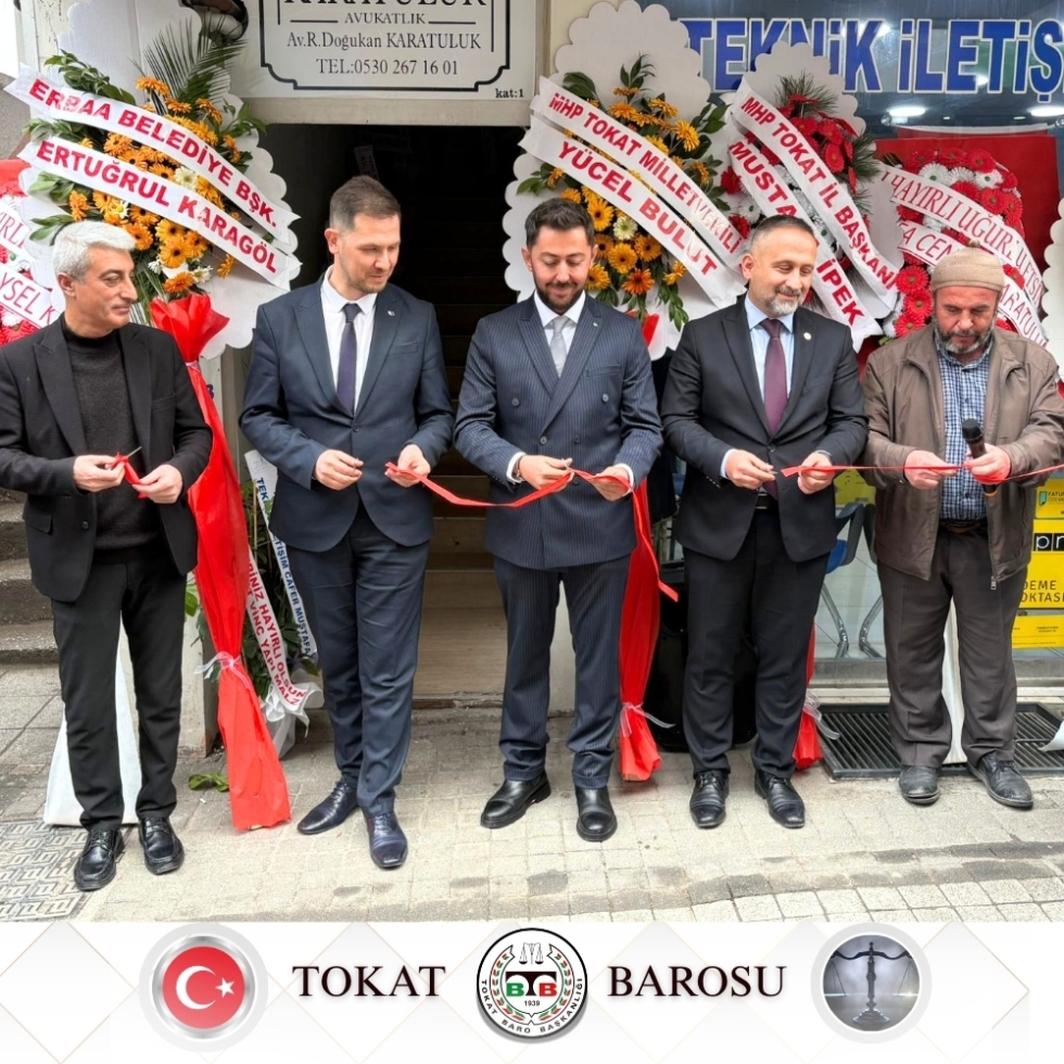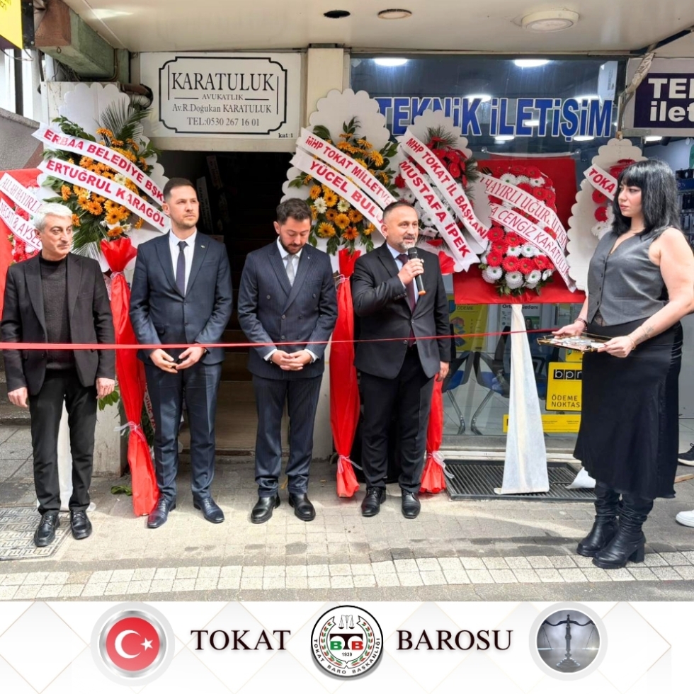 02.04.2026 tarihinde Baro Başkanımız Av. Volkan BOZKURT ve meslektaşlarımız, Av. Ramazan Doğukan KARATULUK ' un büro açılışına katıldılar.