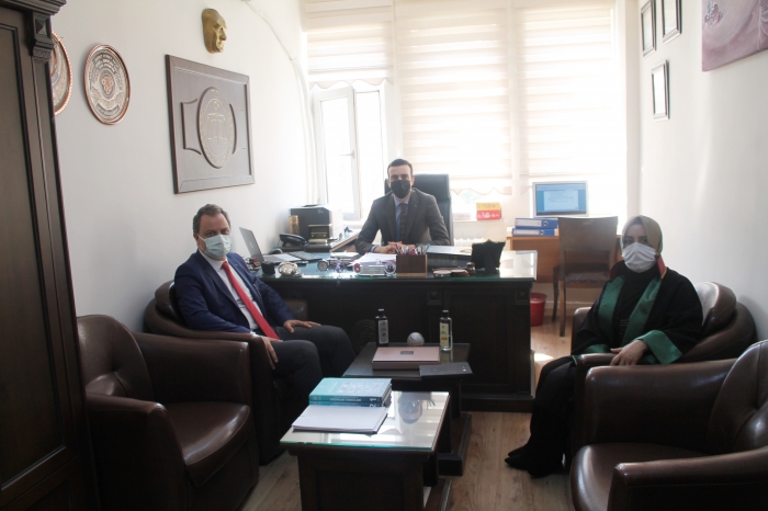 30.03.2021 tarihinde Baro Başkanımız Avukat Melih YARDIMCI ve Yönetim Kurulu Üyemiz Avukat Gül Sümeyya AĞAR, Tokat Cumhuriyet Savcısı Alparslan YILDIZTAŞI' nı ziyaret ettiler.