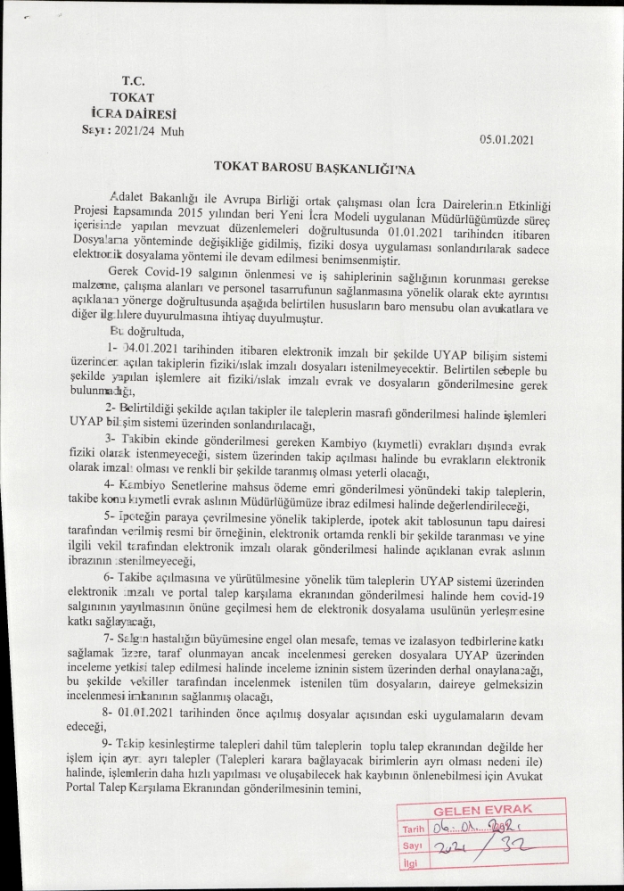 İcra Dairelerinde Elektronik Dosyalama Yöntemine Geçilmesi hk.