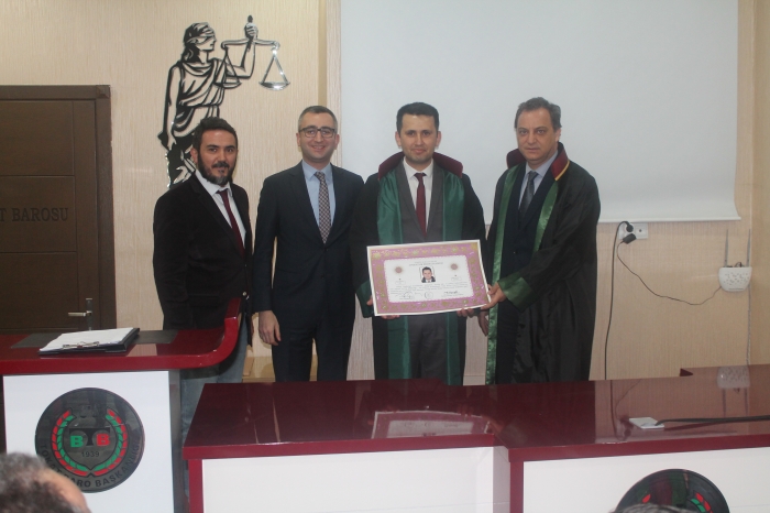 Avukat Fatih KÖŞELİ’nin Ruhsatnamesi 21.03.2019 tarihinde Baromuz Sosyal Tesislerinde düzenlenen törenle teslim edildi. Düzenlenen törene Baro Başkanımız Avukat Melih YARDIMCI ve Yönetim Kurulu üyelerimiz katıldılar. Ruhsatnamesini teslim alan meslektaşımıza hayırlı olsun dileklerimizi iletiyoruz.
