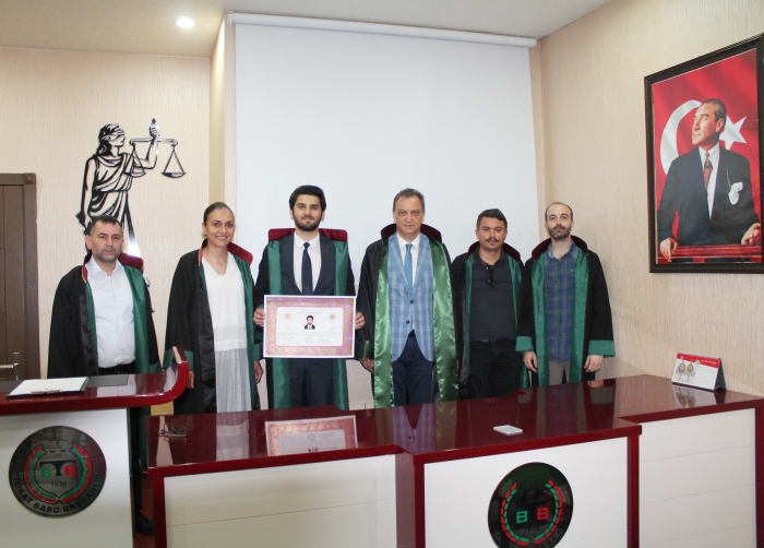 Düzenlenen törene Baro Başkanımız Av. Melih YARDIMCI, Yönetim Kurulu Üyelerimiz, Avukat Meslektaşlarımız ve meslektaşımızın ailesi katıldılar.