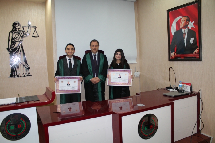Avukatlar Halenur GÜLCÜ ve Abdullah ÇAĞLAR ’ın Ruhsatnameleri 20.03.2020 tarihinde , Avukatlar Sertap ALTINTAŞ ve Salih ÇOLAK’ ın Ruhsatnameleri 03.04.2020 tarihinde Baromuz Sosyal tesislerinde düzenlenen törenlerle teslim edildi. Düzenlenen törenlere Baro Başkanımız Av. Melih YARDIMCI , Yönetim Kurulu Üyelerimiz, Avukat Meslektaşlarımız ve meslektaşlarımızın aileleri katıldılar.