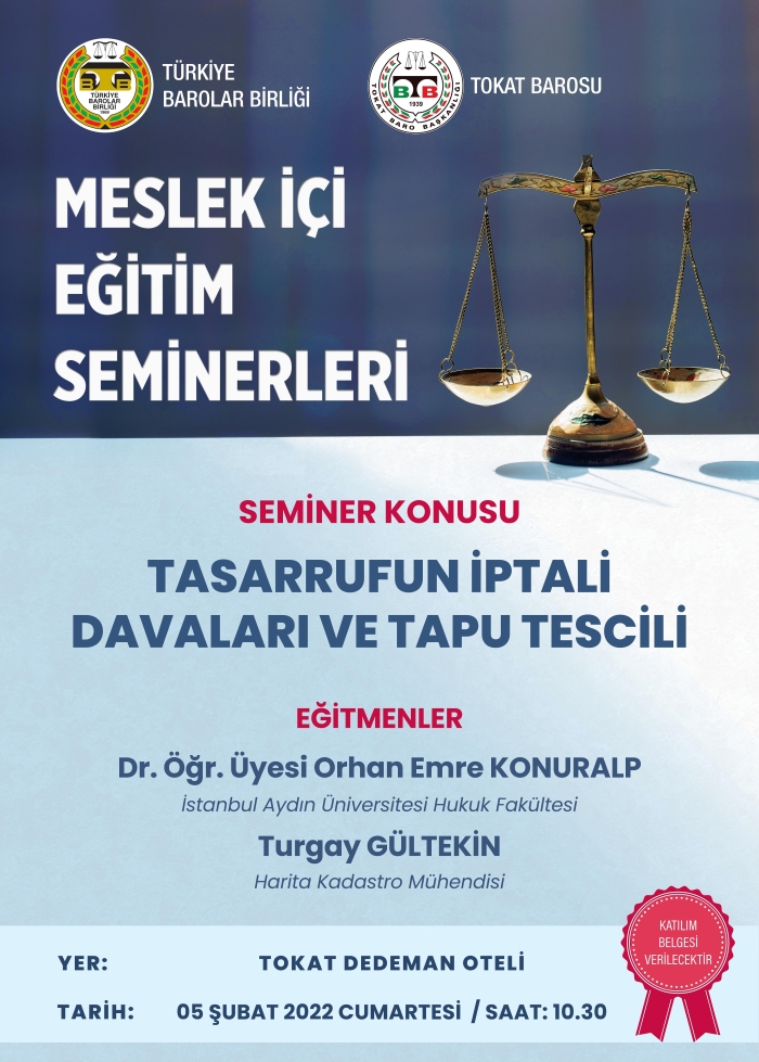 " TASARRUFUN İPTALİ DAVALARI VE TAPU TESCİLİ" KONULU EĞİTİM SEMİNERİ