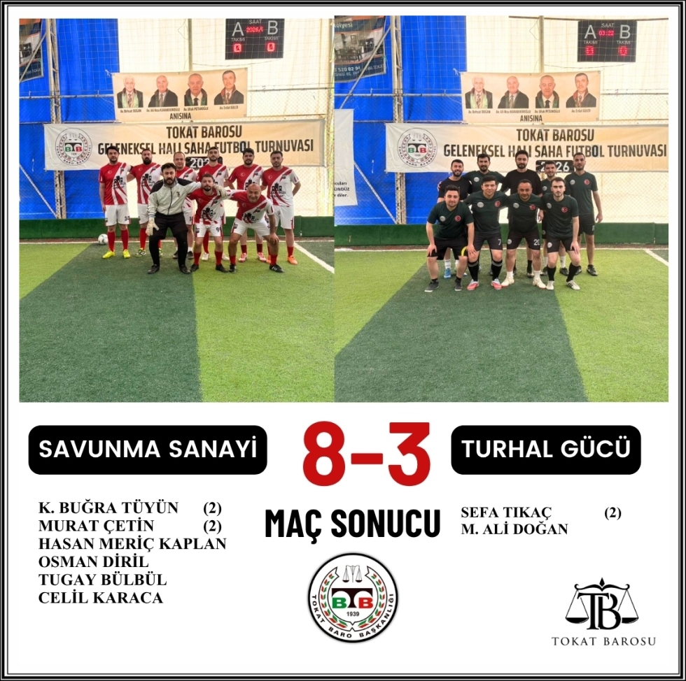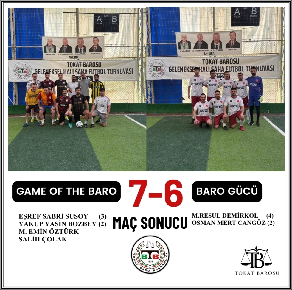 Tokat Barosu Av. Behzat DOĞAN , Av. Ali Rıza KARABEKİROĞLU, Av. Ufuk PETANOĞLU ve Av. Erdal GÜLER Halı Saha Futbol Turnuvası 1. Hafta Sonuçları