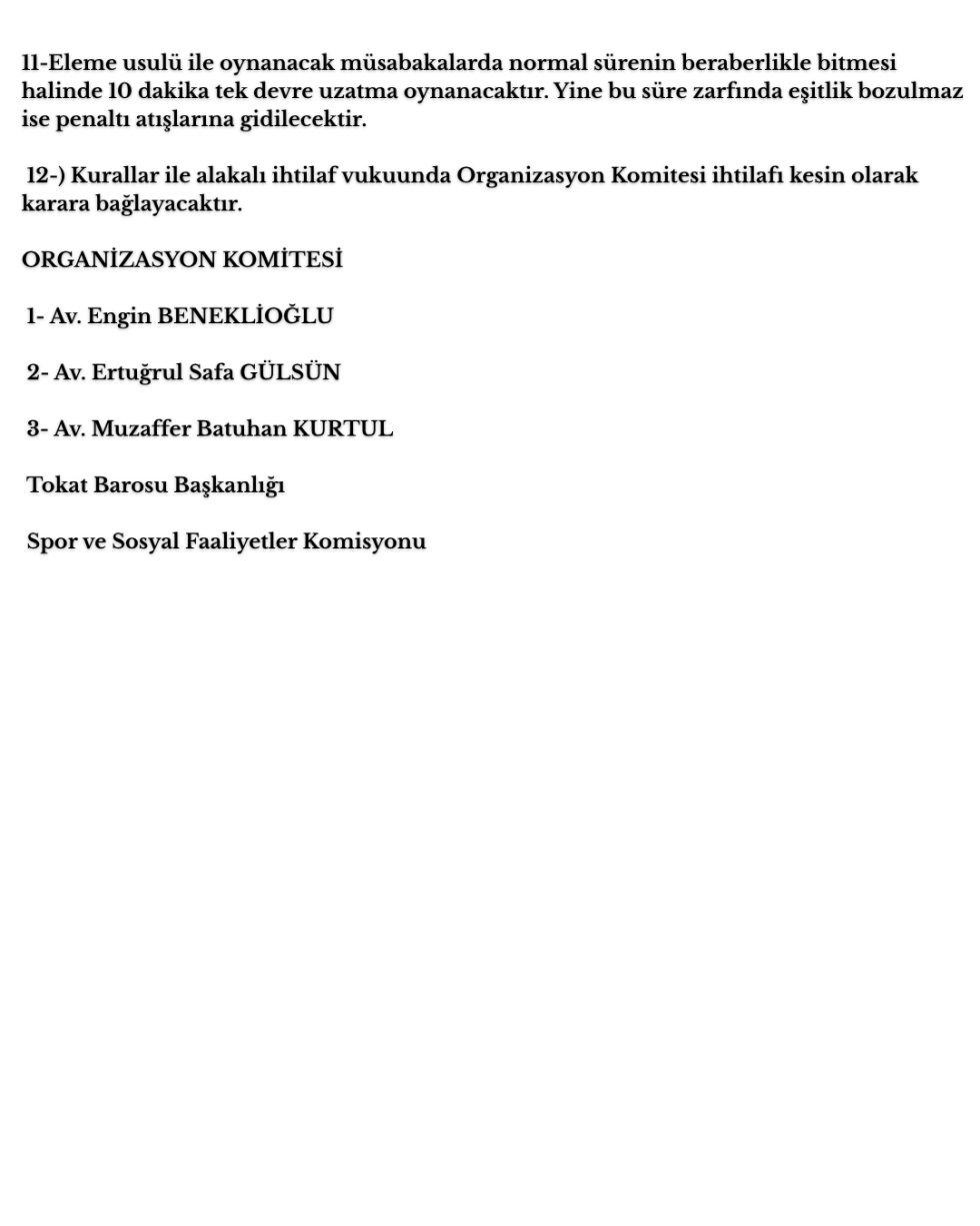 Tokat Barosu Geleneksel Halı Saha Turnuvası ve Oyun Kuralları 2026