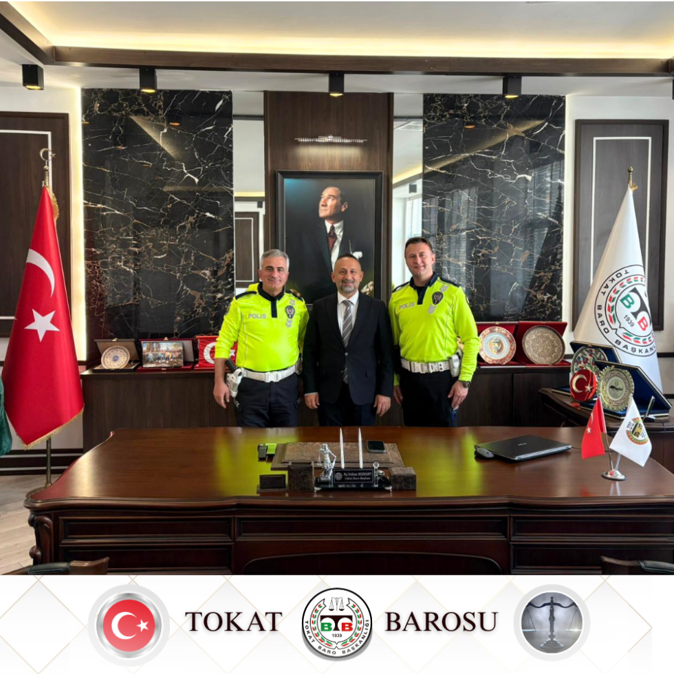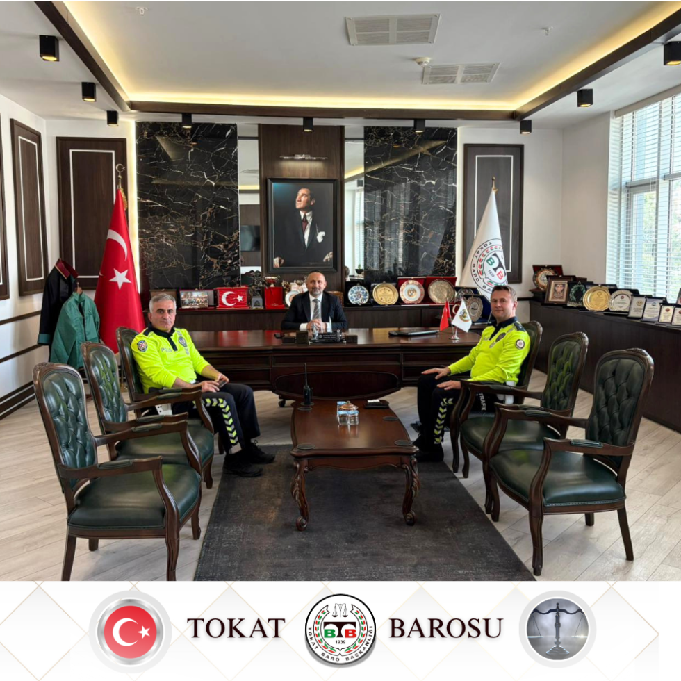 Baro Başkanımız Av. Volkan BOZKURT, Tokat Bölge Trafik Denetleme Şube Komseri Hamit GICIR , Tokat Bölge Trafik Denetleme Polis Memuru Metin YILMAZ,a ziyaretlerinden duyduğu memnuniyeti dile getirirken, teşekkürlerini ilettiler.
