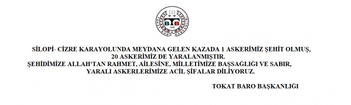 TURHAL' A ŞEHİT ATEŞİ DÜŞTÜ