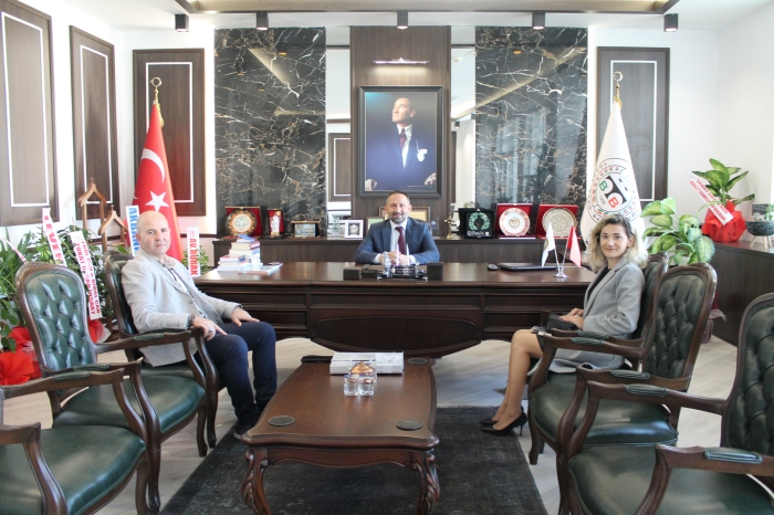 26.10.2022 Tarihinde Türkiye İş Bankası Tokat Şube Müdürü Yavuz YILDIZ ve Bireysel Portföy yöneticisi Ruhan ÖGE, Olağan Genel Kurul sonrası Baro Başkanlığına seçilen Avukat Volkan BOZKURT’ a hayırlı olsun ziyaretinde bulundular.