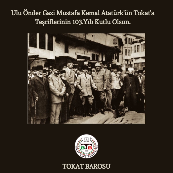 Ulu Önder Gazi Mustafa Kemal Atatürk 'ün Tokat'a teşriflerinin 103.yıldönümü Kutlu Olsun