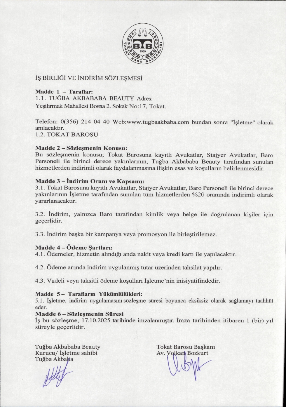 Ziyaret kapsamında, Tuğba AKBABA Beauty İşletmesi ile Baromuz arasında indirim anlaşması imzalanmıştır.