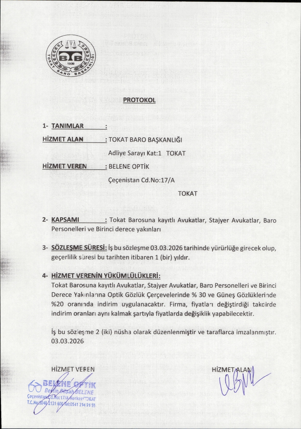Baromuz İle Tokat Belene Optik Arasında İndirim Anlaşması İmzalandı.