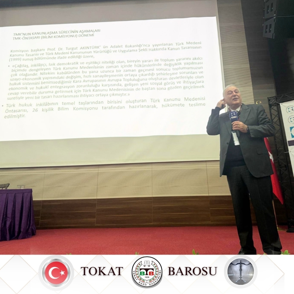 Türk Medenî Kanunu’nun kabulünün 100. yıl dönümü münasebetiyle düzenlenen ve Tokat Baromuzun da paydaşları arasında yer aldığı "Türk Medenî Kanunu’nun Kabulünün Yüzüncü Yılı Sempozyumu", 26 Mart 2026 tarihinde Tokat Gaziosmanpaşa Üniversitesi 15 Temmuz Kongre ve Kültür Merkezi'nde gerçekleştirilen açılış programıyla başladı.