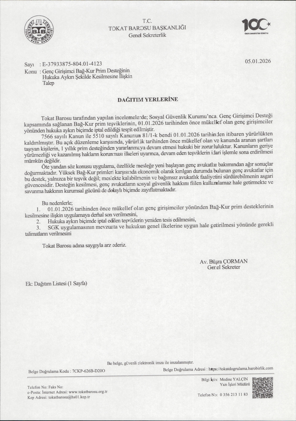 Baromuz Tarafından Adalet Bakanlığına Yazılan Yazı