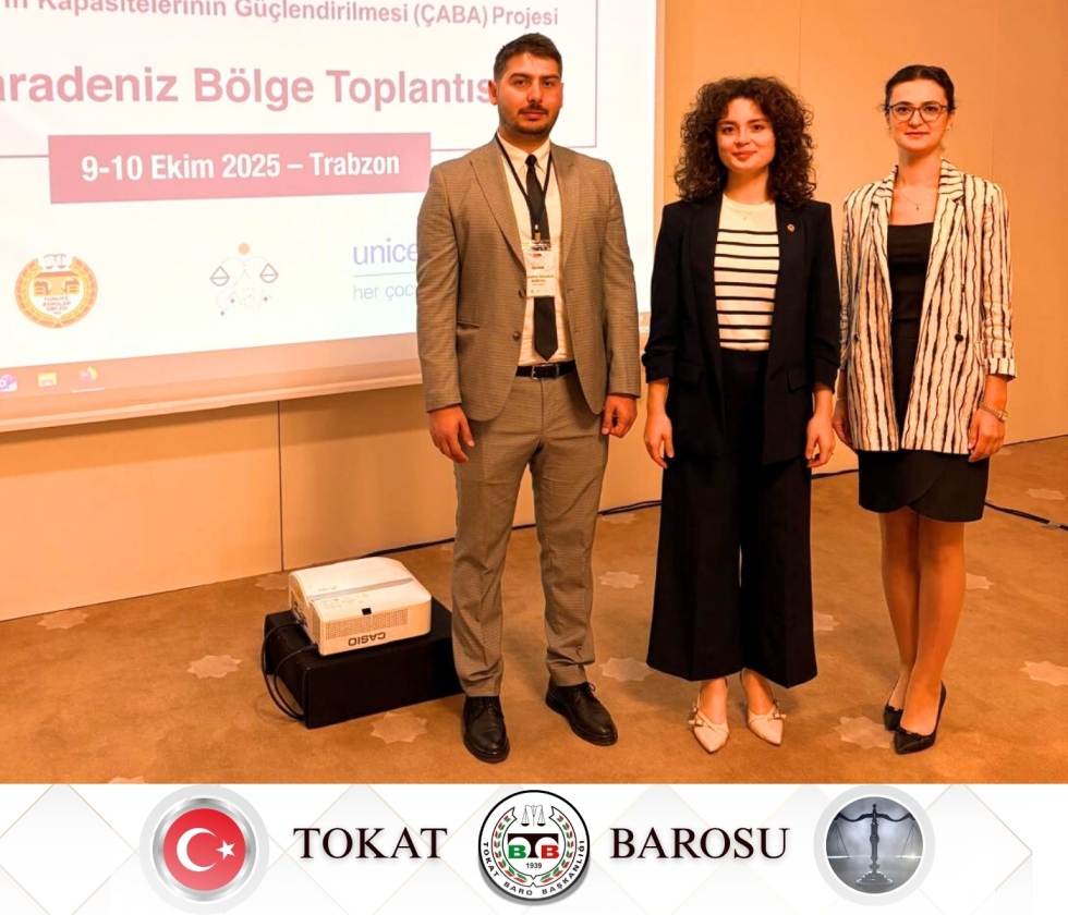 Trabzon Çocuk Hakları Merkezi açılışı ve Çocuk Haklarının geliştirilmesi Korunması ve İzlenmesi Konusunda Avukatların ve Baroların Kapasitelerinin Güçlendirilmesi Projesi (ÇABA) kapsamında gerçekleştirilen Karadeniz Bölge Toplantısına TBB Yönetim Kurulu üyemiz Av. Melih YARDIMCI, Baromuz Yönetim Kurulu Üyemiz Av. Merve BIÇAKÇI ile komisyon üyelerimizden Av. Muzaffer Batuhan KURTUL ve Av. Nursima YANMAZ katılım sağlamıştır.
