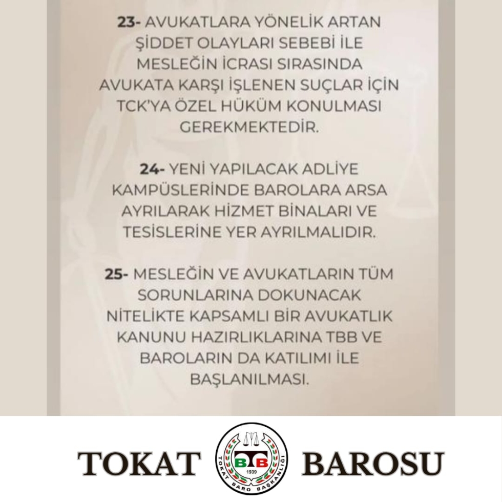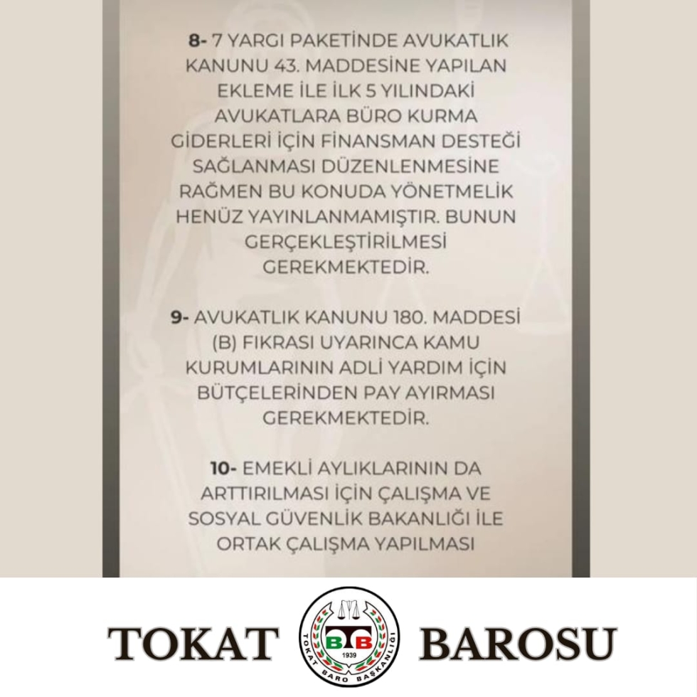 Adalet Bakanlığı Gölbaşı Hakimevi’nde, 07.07.2023 tarihinde gerçekleştirilen toplantıda İstiklal Marşı ve saygı duruşunun ardından; deprem bölgesini temsilen dört Baro Başkanı, bölgeleri temsilen birer Baro Başkanı ve mensup sayısı fazla olan üç Baro Başkanı avukatların yaşadıkları sorunları ifade etti.