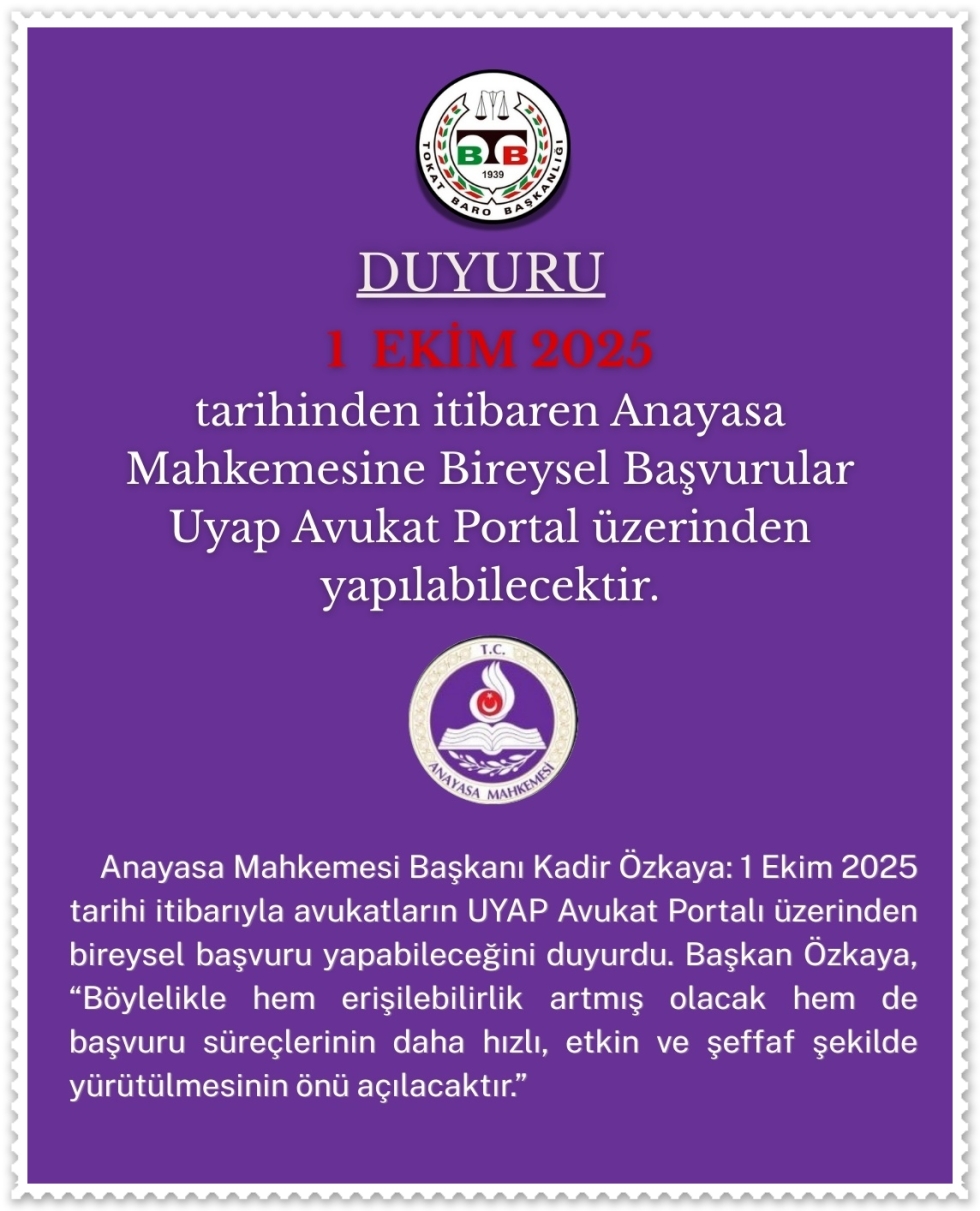 Anayasa Mahkemesine Bireysel Başvurular Hakkında Duyuru