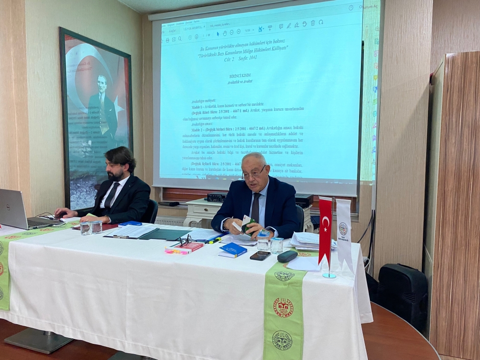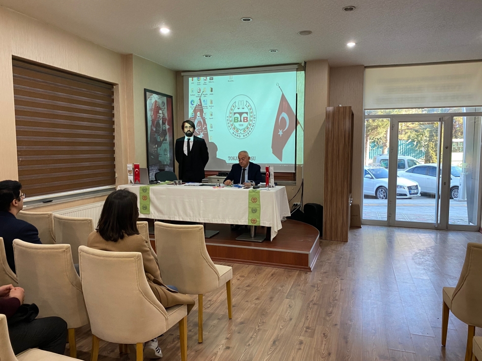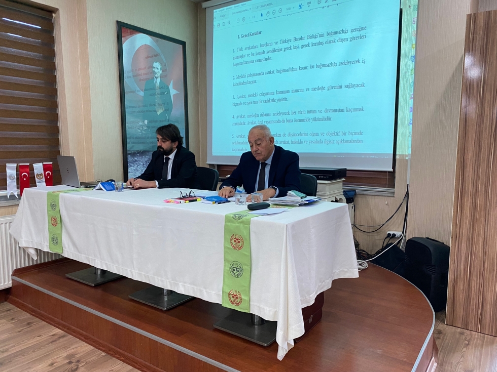 Toplantıda Av. Ufuk PETANOĞLU tarafından ” Avukatlık Kanunu ve Meslek Kuralları ” konulu anlatımlar gerçekleştirilmiştir.