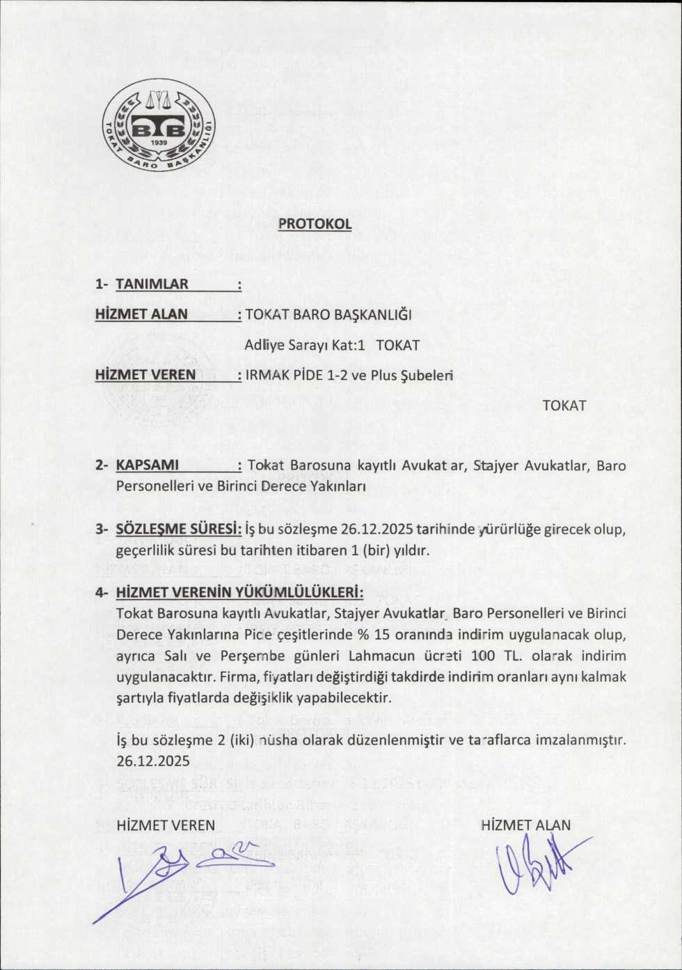 Baromuz İle Tokat Irmak Pide Şubeleri Arasında İndirim Anlaşması İmzalandı.