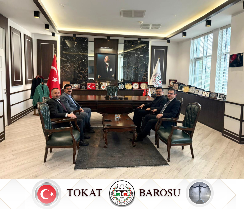 16.02.2026 tarihinde Tokat Cumhuriyet Savcıları Sayın  Akın Atalay KAPLAN, Sayın Melih KODALAK ve  Sayın Fatih DARENDELİ Baro Başkanımız Av. Volkan BOZKURT' u makamında ziyaret ettiler.