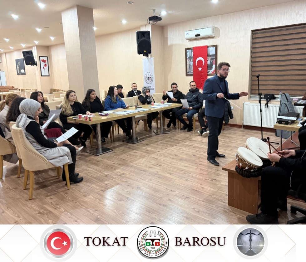 Tokat Barosu, meslektaşlarının kişisel gelişimine katkı sağlamak ve sosyal dayanışmayı güçlendirmek amacıyla yürüttüğü kültürel faaliyetlerine bir yenisini daha ekledi. Avukatlar ve stajyer avukatlardan oluşan Tokat Barosu Türk Sanat Müziği Korosu, ilk çalışmasını gerçekleştirerek sanat yolculuğuna başladı.